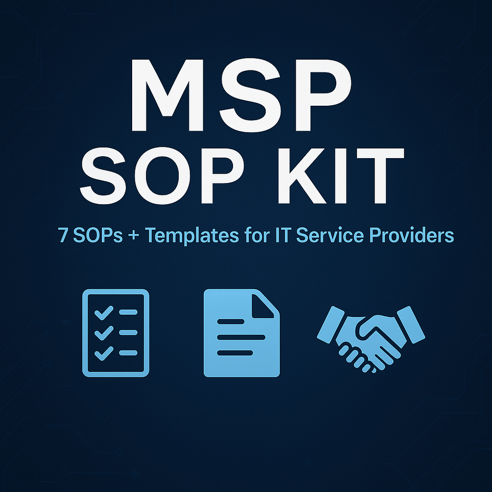 A complete SOP toolkit for MSPs and IT consultants. Includes 7 SOPs, editable templates, and client onboarding tools to standardize service delivery.